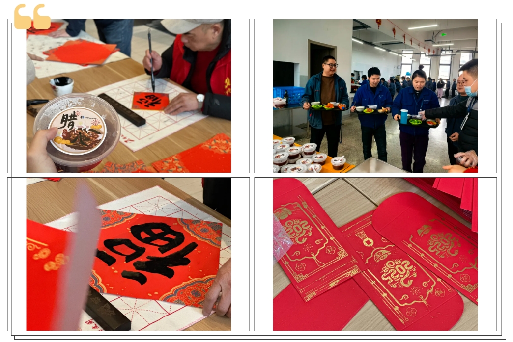 活動現場,公司特別邀請了社區的書法愛好者揮毫潑墨,書寫寓意吉祥的福字。員工們也拿起毛筆,在紅紙上認真寫下自己對新年的美好祝愿,一筆一劃間,傳遞著對新年的期盼和對家人的思念。最有趣的莫過于拓印紅包。公司準備了特制的紅包模板和金色印泥,員工們親手拓印出獨一無二的紅包,既體驗了傳統手工藝的樂趣,更為新年的贈禮增添了一份獨特的心意和創意。