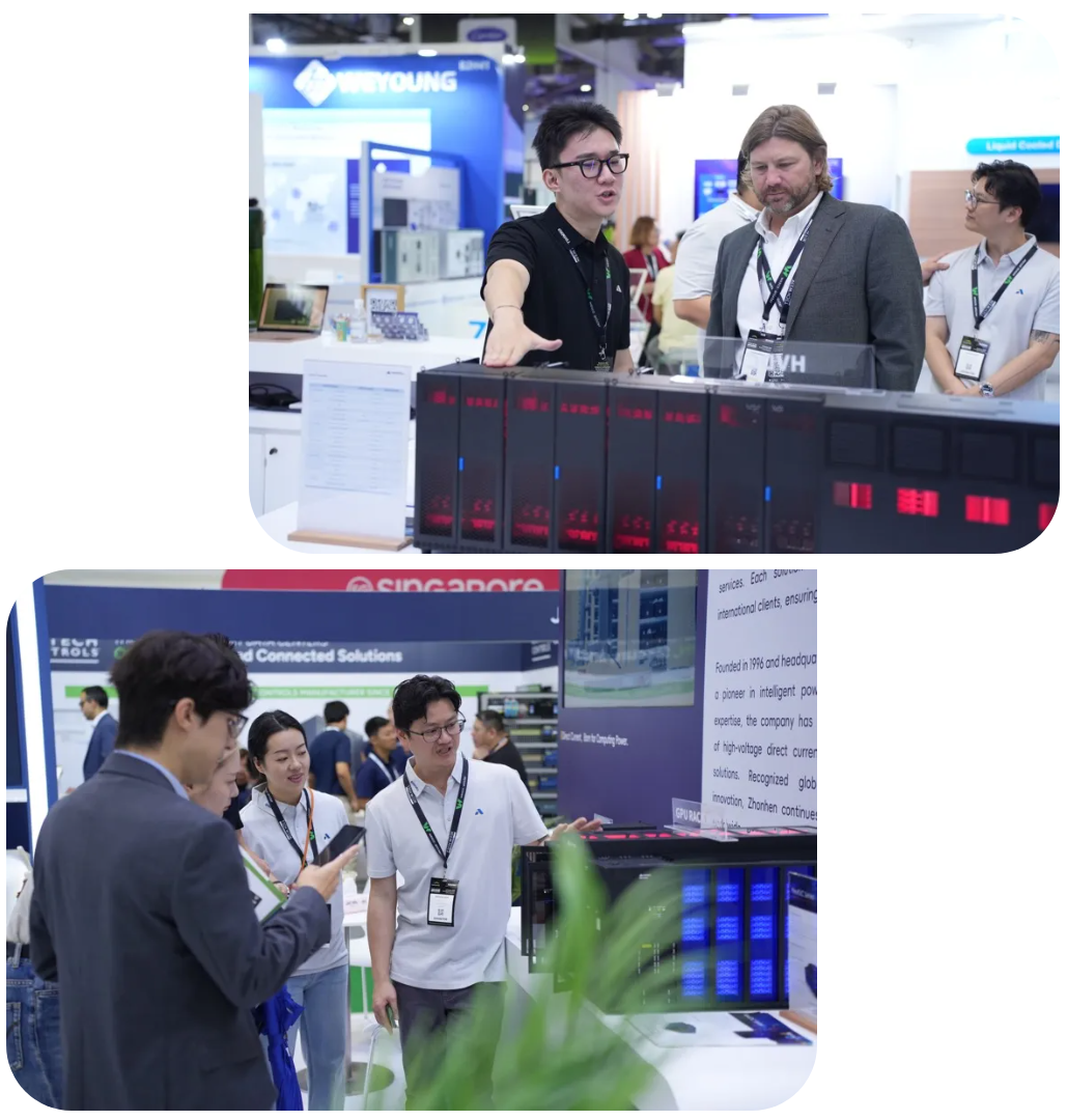 展會期間,美國、德國、澳大利亞、印度、韓國等國家的數據中心服務商、全球主流科技媒體代表等參展嘉賓紛紛到訪中恒Enervell展區,就數據中心HVDC解決方案與應用在現場展開深入的交流。