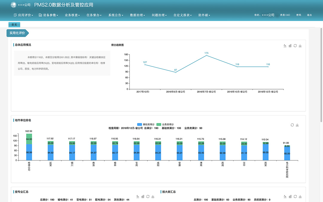 PMS2.0數據質量與輔助管理應用,主要以PMS2.0為平臺構建數據質量及應用實用化分析功能,為省、市及班組人員提供便捷、規范的實用工具,輔助省(市)公司對設備臺賬維護完整性、準確性、圖數關聯質量、業務數據質量、數據共享情況進行整體分析管控,并提供問題數據整改功能,強化系統使用的保便捷性,促進數據質量和應用提升。