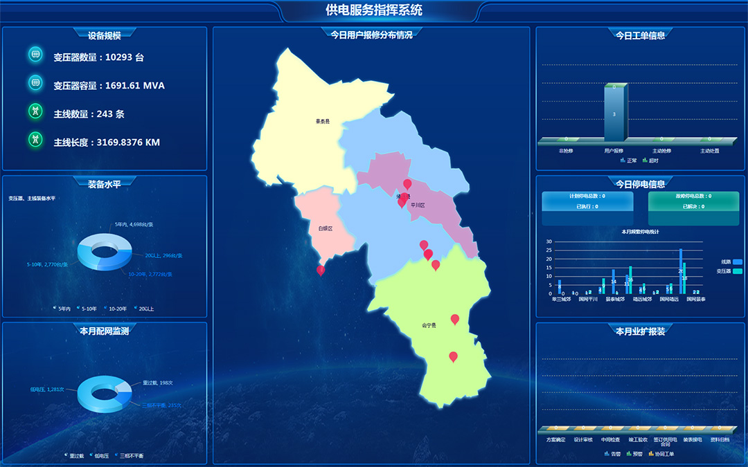 中恒博瑞可提供人員和工具軟件支撐,為各級管理人員、專業人員及一線班組定制報表,實現管理人員對整個生產工作的全面掌控,包括電網整體規模數量、設備裝備水平,運行工況、運檢管控情況、缺陷風險情況和各類預警等信息。